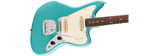 The Player II Jaguar radiates timeless Fender charm, but under the hood, it's primed for today's players. Everything about the neck is designed for fast and fluid playability, from the Modern “C”-profile with silky satin urethane finish on the back to the comfy 9.5”-radius slab rosewood with smooth rolled edges and 22 medium jumbo frets. A classic alder body is available in both timeless Fender finishes and never-before-seen colors unearthed from the archives. Player Series Alnico V (Bridge) and Alnico II (Neck) Single-Coil Jaguar pickups offer crystalline highs, musical mids and tight lows that elevate any genre. The 3-way blade switch lets you easily dial in everything from glassy neck pickup chime to cutting bridge pickup bite and all points in between, while a 6-saddle Jaguar bridge with Floating Tremolo, upgraded Mustang® saddles and ClassicGear™ tuners ensure precise tuning stability for the flexibility to explore endless sonic possibilities.