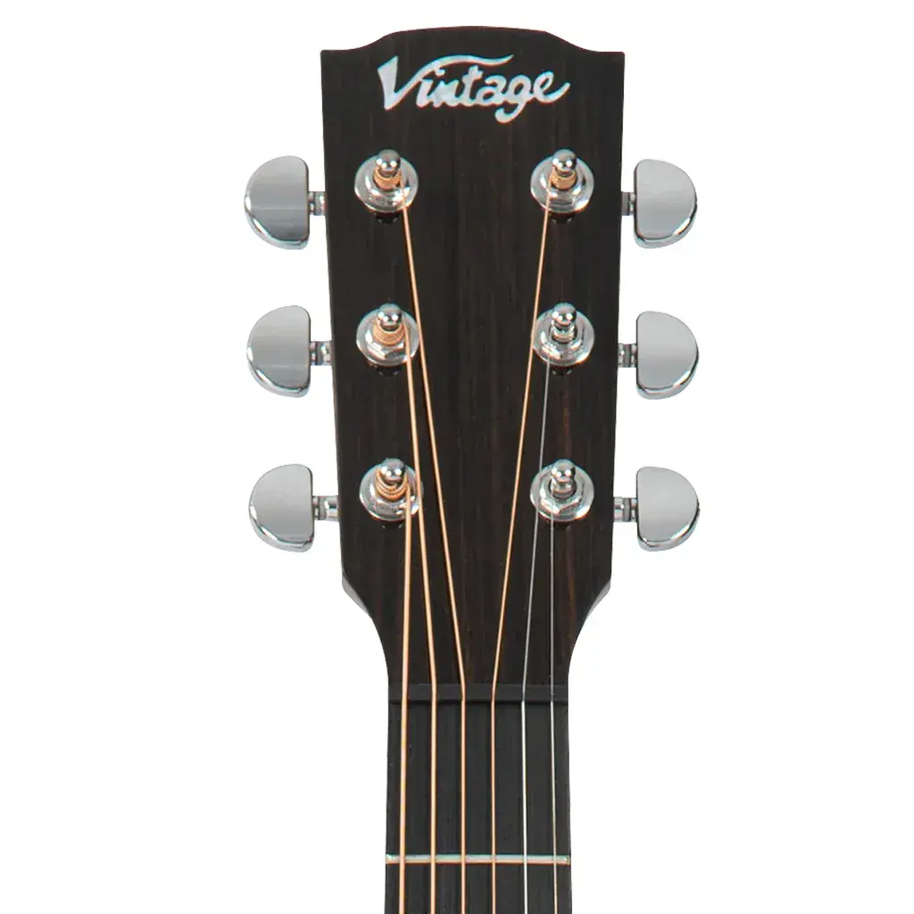 For players who enjoy stunning cosmetics and exquisite tonal qualities, the Vintage Pacific Coast Series of acoustic and electro-acoustic guitars feature satin mahogany bodies, nato necks, techwood fingerboards, mother of pearl rosette inlays, with solid spruce sound boards.